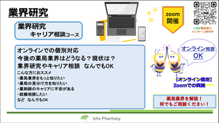 インターンシップ・セミナー分類】 【オンライン限定】 【詳細】 薬局薬剤師が一体何をしているの? 薬局って全部同じじゃない? 薬局のスケールによる違いや薬局づくりの違いなど、薬局薬剤師の業務にも違いがあります。 そんな調剤薬局に関する疑問を解消します。