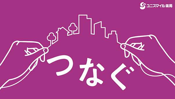 ユニスマイルという社名は、「Unity(ひとつになる)」「Unite(つなぐ)」「Smile(笑顔)」という3つの言葉が合わさって生まれました。地域とひとつになり笑顔をつなぐ薬局でありたいという思いが込められています。なかでも「つなぐ」というフレーズは2022年から始まった中期事業計画のテーマとしても使用しています。人材、店舗、システム、そして患者さま、それぞれのつながりを強化し、地域医療と患者さまをつなぐ存在に近づけるよう取り組んできました。